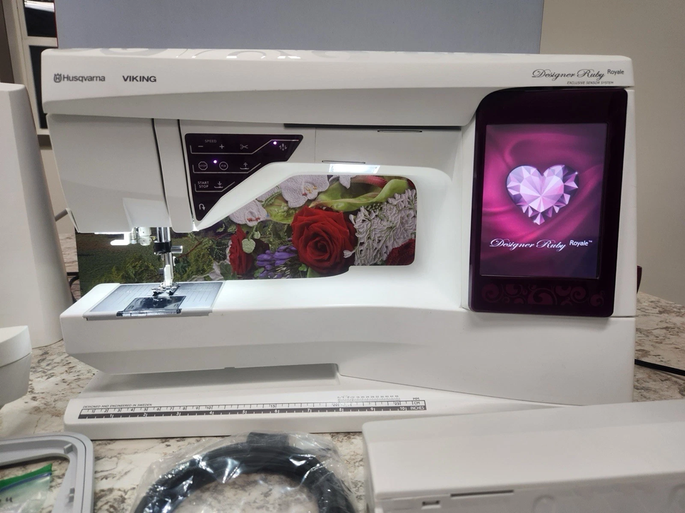Machine à coudre et à broder Husqvarna Viking Designer Ruby Royale prête à la vente