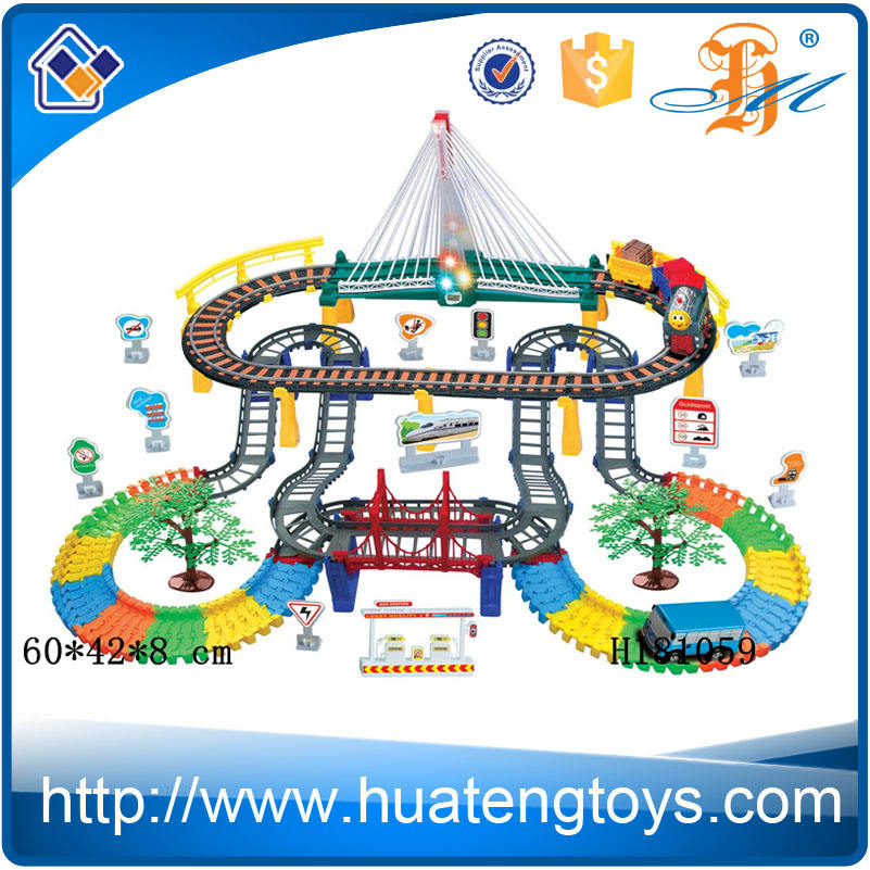 Électrique piste voiture jouet avec un busDescription