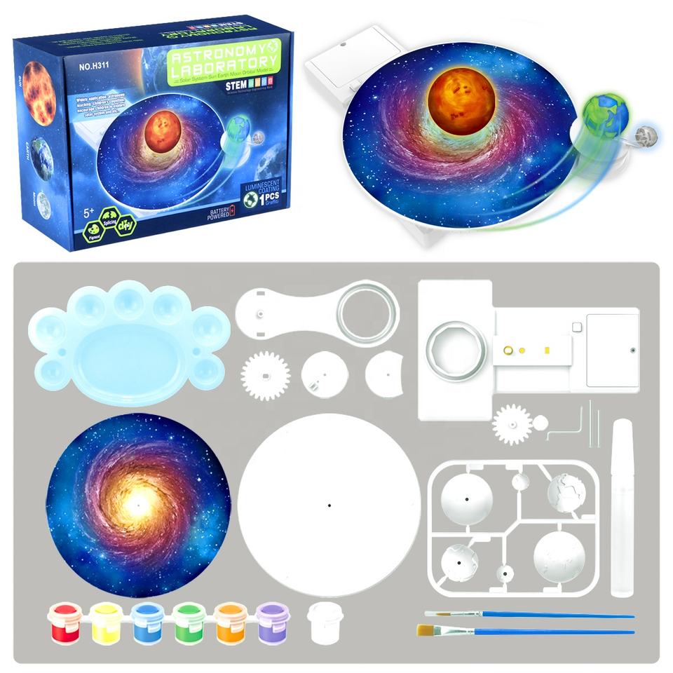 Kit de Peinture DIY Éclipse Solaire H311 STEM – Modèle du Système Solaire Rotatif Soleil-Lune-Terre à Piles pour Enfants