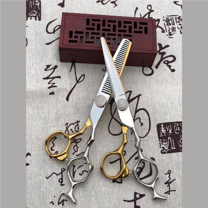Ciseaux de coiffure H6 6,0 pouces, ciseaux à effiler en acier inoxydable chromé à tête droite pour usage professionnel