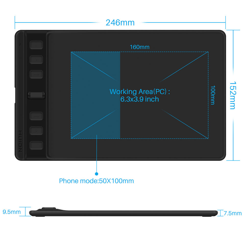 246*152*7,5 ~ 9,5 mmDimensions