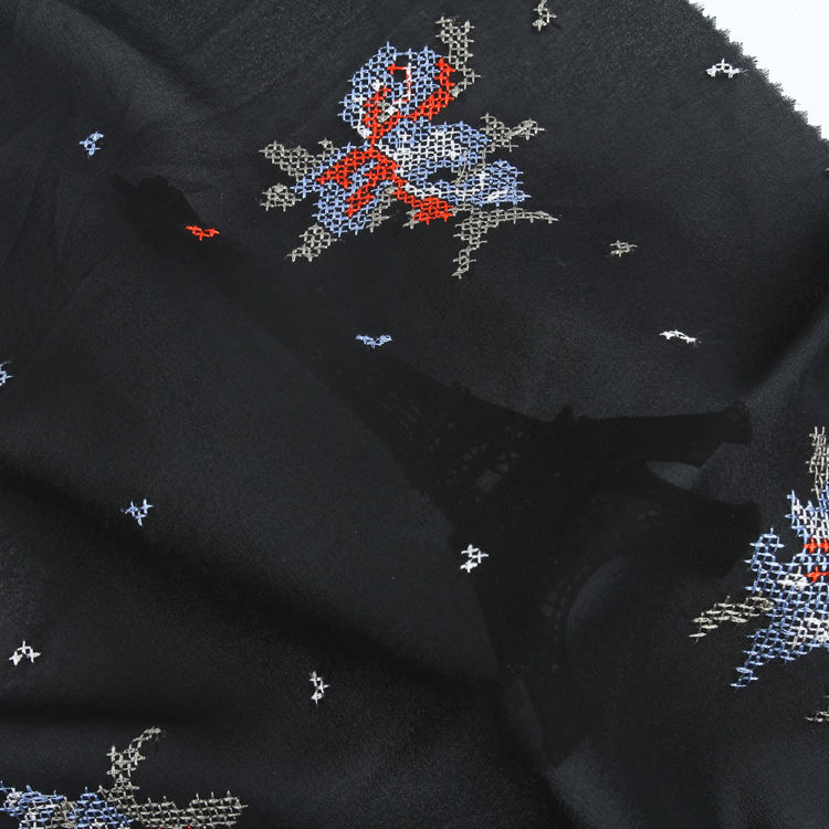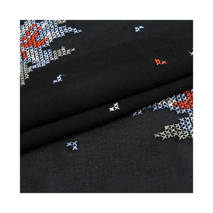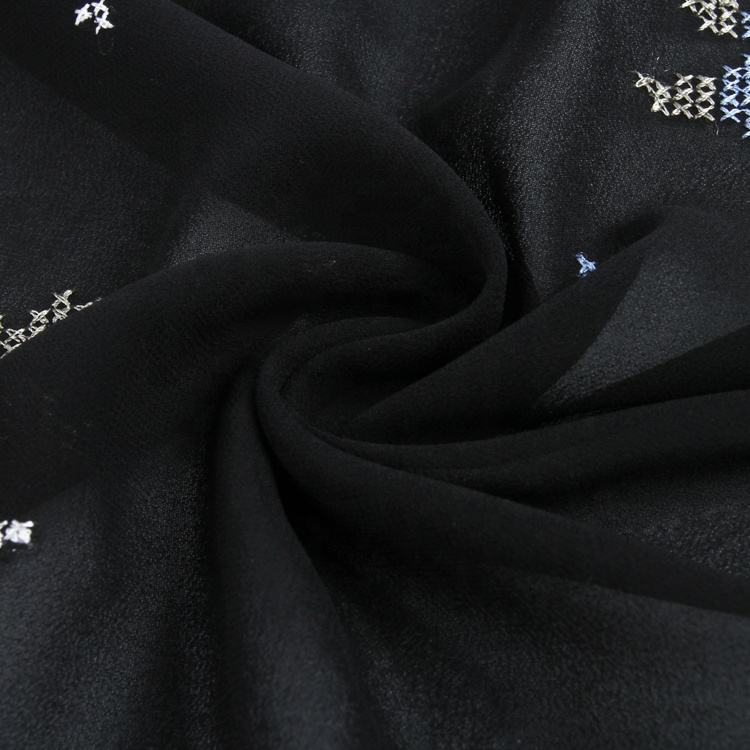 HA-13648C Paris Chiffon Fabric Stocklot Woven Allover Embroidered Black Fashion 100 Yards Chiffon Ggt with Multi Embroidery