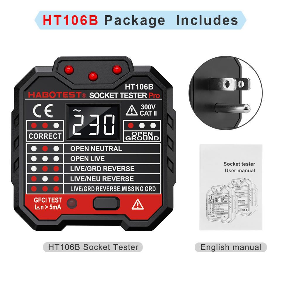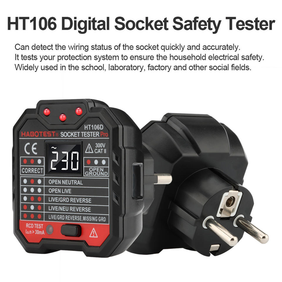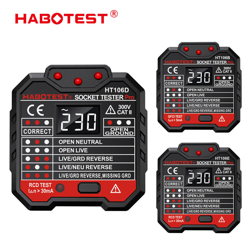 Testeur de prise HABOTEST série HT106, testeur de tension, détecteur de prise, prise US, UK, EU, contrôle de la polarité de la ligne de terre, contrôle de la phase