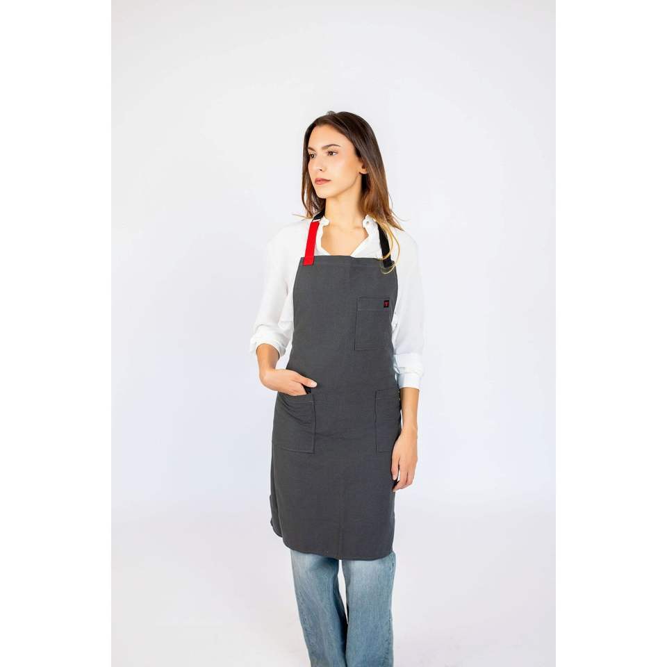 Tablier de travail gris HAI en toile de coton robuste, personnalisable et brodé, pour la restauration, les chefs, les barbiers, le nettoyage et la peinture
