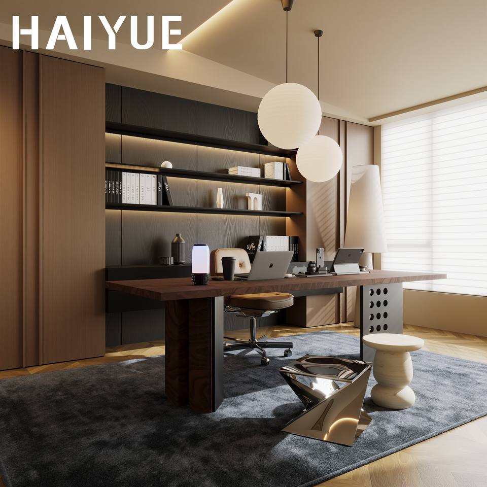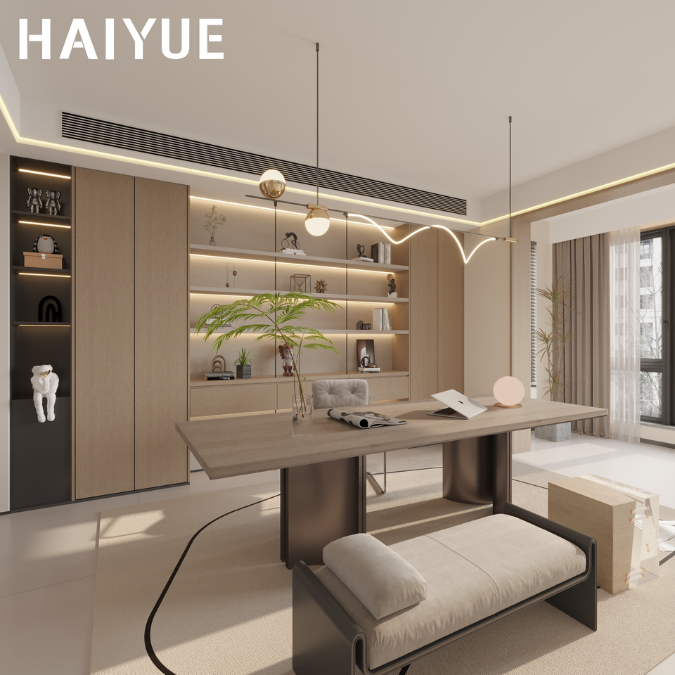 Bibliothèque en bois HAIYUE du sol au plafond avec portes en verre anti-poussière pour bureau