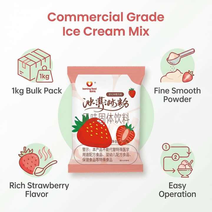 Poudre de préparation pour crème glacée certifiée HALAL, saveur fraise, pour service molle/dure, fournisseur chinois, pour les boutiques de desserts