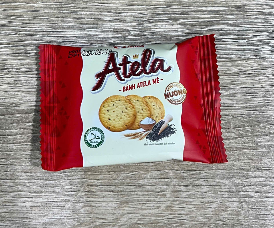 Ingrédients:Farine de blé, huile de palme, sucre, sésame,...