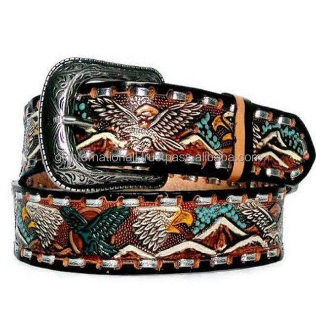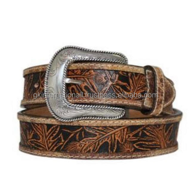 Ceinture en cuir à GRAIN complet, peugeot 2021, DESIGN de fleurs occidentaux sculptées à la main, ères italiennes, tannage à la main