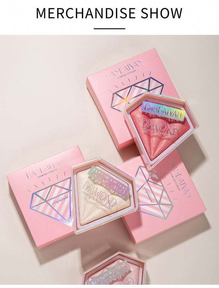 Poudre pressée illuminatrice HANDAIYAN, design diamant, pour le nez, le visage, les yeux, OEM ODM, logo personnalisé