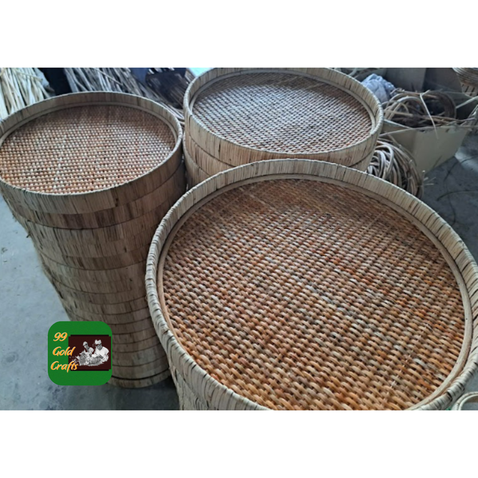 PLATEAU EN ROTIN DE BAMBOU FABRIQUÉ À LA MAIN PLATEAU DE SERVICE ROND NATUREL POUR THÉ CAFÉ DESSERTS ET PRÉSENTOIR DE CUISINE