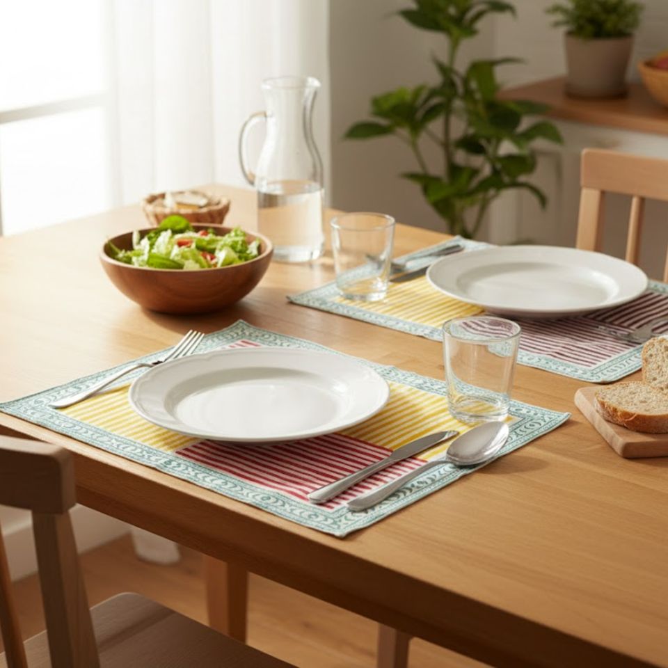 Ensemble de 6 serviettes de table en coton imprimées et faites à la main Checkmate | Serviettes de table élégantes réutilisables | Décoration de cuisine haut de gamme pour la maison