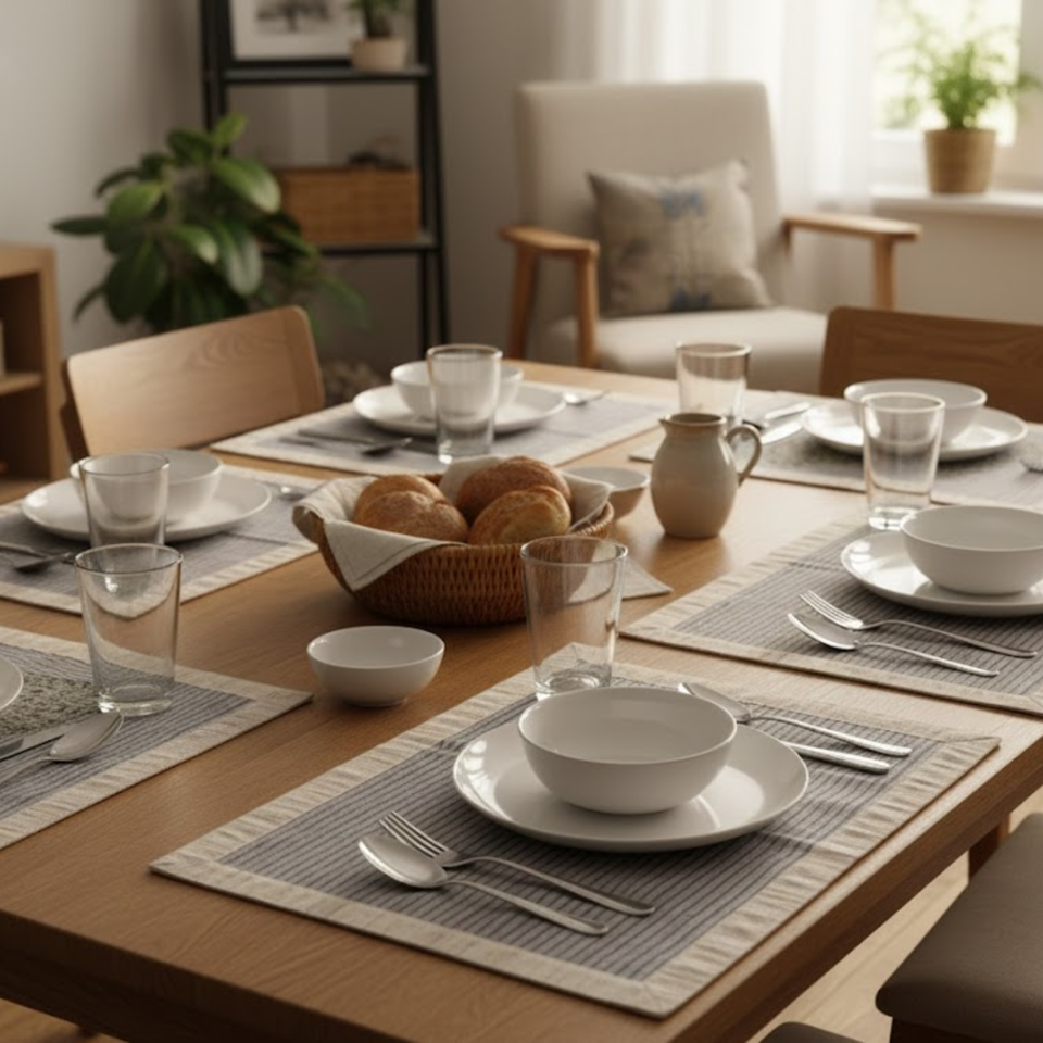 Ensemble de 6 sets de napperons carrés en coton imprimés faits à la main | Accessoires de table légers et de qualité supérieure | Cadeau élégant et durable pour la maison