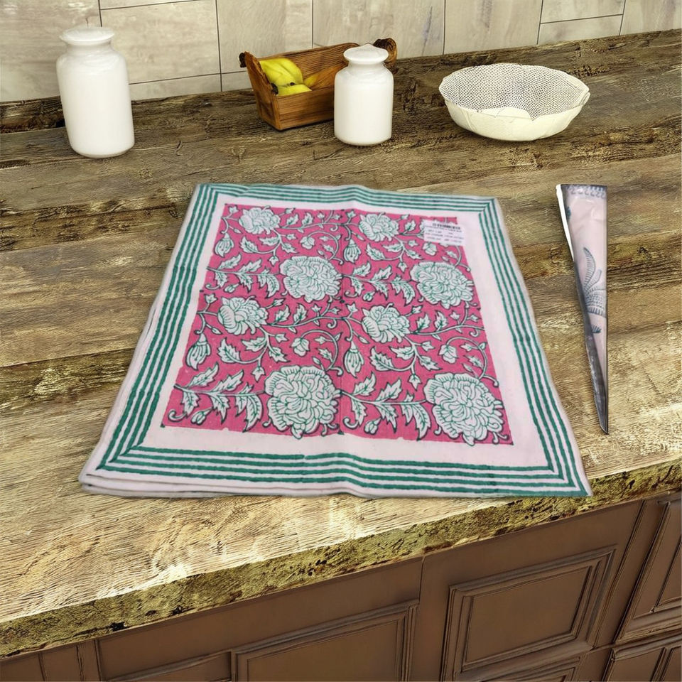 Ensemble de 6 serviettes de table imprimées à la main avec motif de jardin de roses, 100% coton, marque STUDIO-N