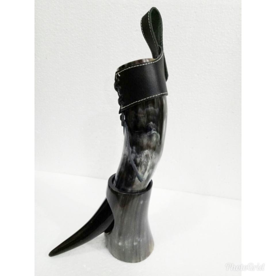 Corne à boire viking médiévale artisanale de haute qualité, polie, en cuir naturel, écologique, motif animalier, qualité supérieure, vintage