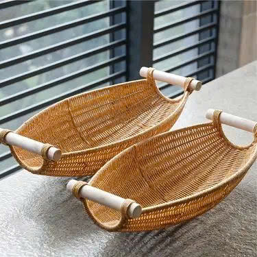 BOL DE SERVICE UNIQUE OVALE FAIT MAIN AVEC POIGNÉE EN BOIS