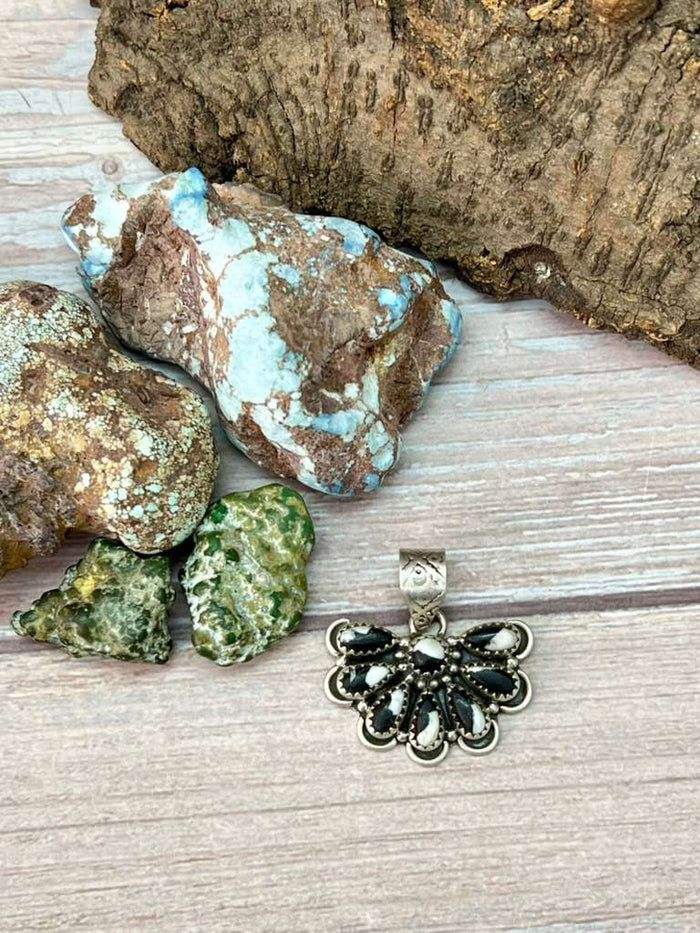 Pendentif fantaisie en argent sterling plaqué rhodium fait à la main, turquoise blanc buffle, pour anniversaire
