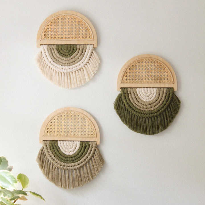Fait à la main! Décoration murale en bois de canne en macramé, Crochet demi-lune, Art mural Boho