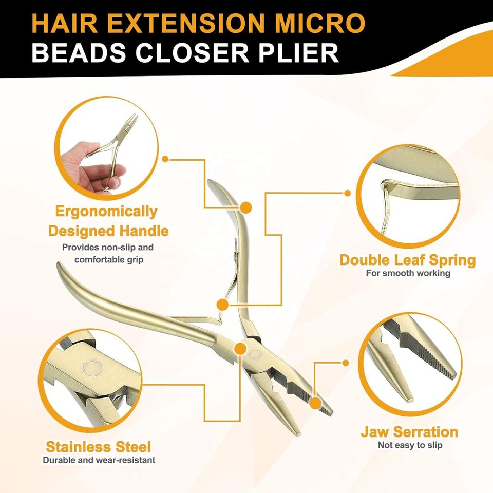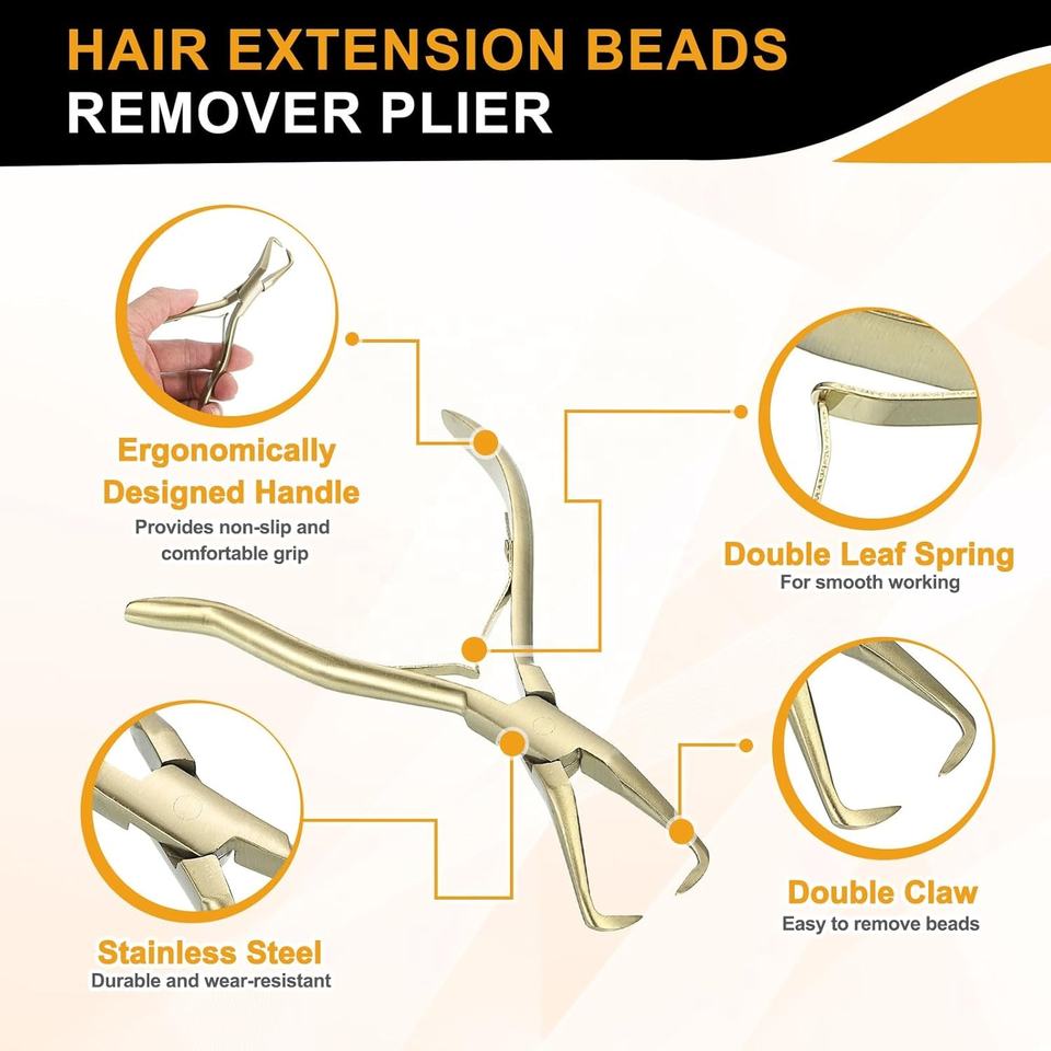 Kit d'outils d'extension capillaire OBEXA – Pince de pose et de retrait de micro-anneaux en acier inoxydable, ton or, avec poignée ergonomique