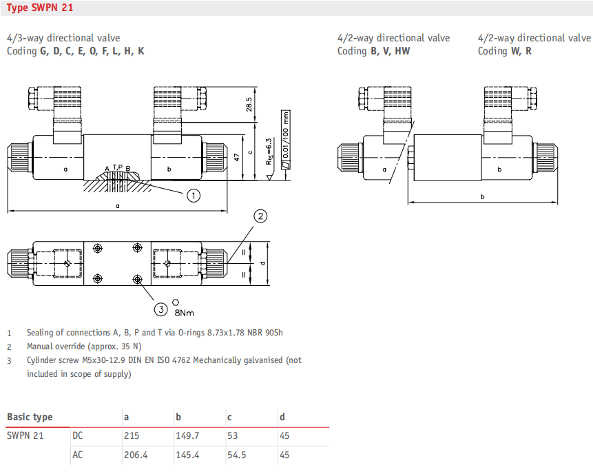 Distributeur directionnel 4/3 voies et 4/2 voies, distributeur à tiroir directionnelNomenclature