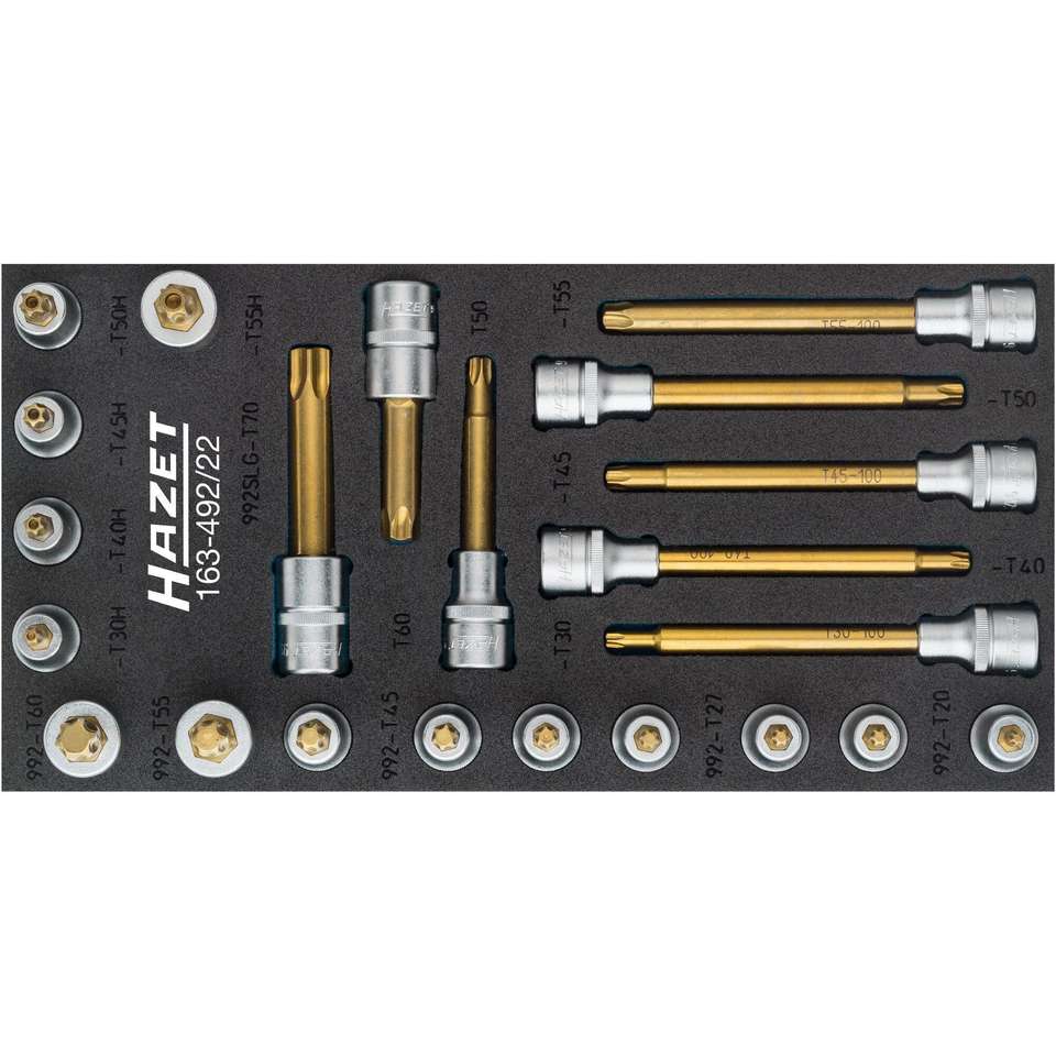 HAZET Jeu de douilles de tournevis ∙ TORX®163-492/22 ∙ 1/2 pouce (12.5mm) carré, creux ∙ TORX intérieur®Profil, Tor inviolable