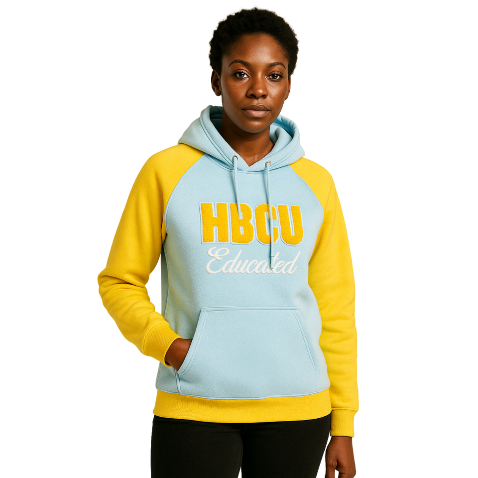 Sweat à capuche à manches raglan bleu ciel, broderie en chenille, sororité grecque Divine Nine, fierté universitaire, logo personnalisé, mode, éducation HBCU
