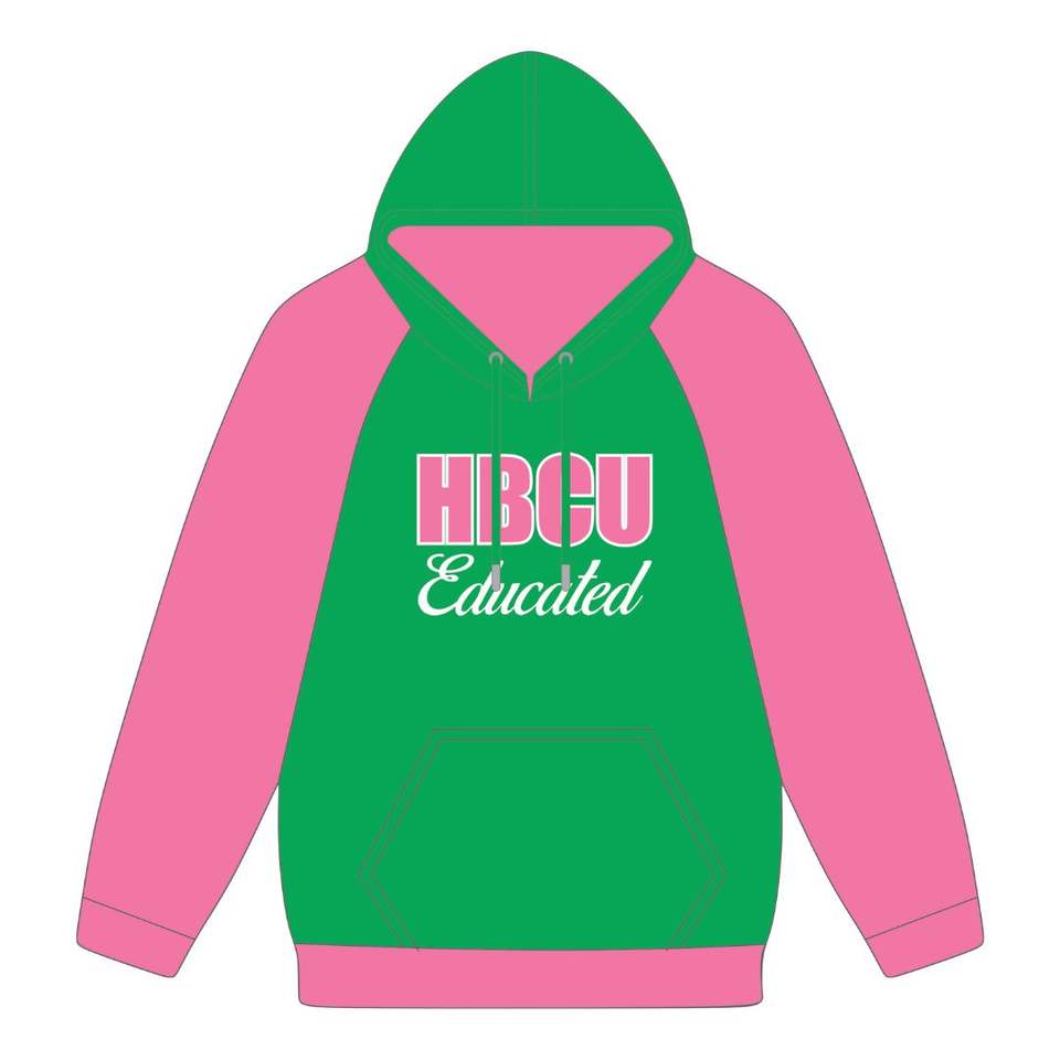 Sweat à capuche à manches raglan vert, broderie en chenille, sororité grecque Divine Nine, vêtements personnalisés, sweat à capuche HBCU