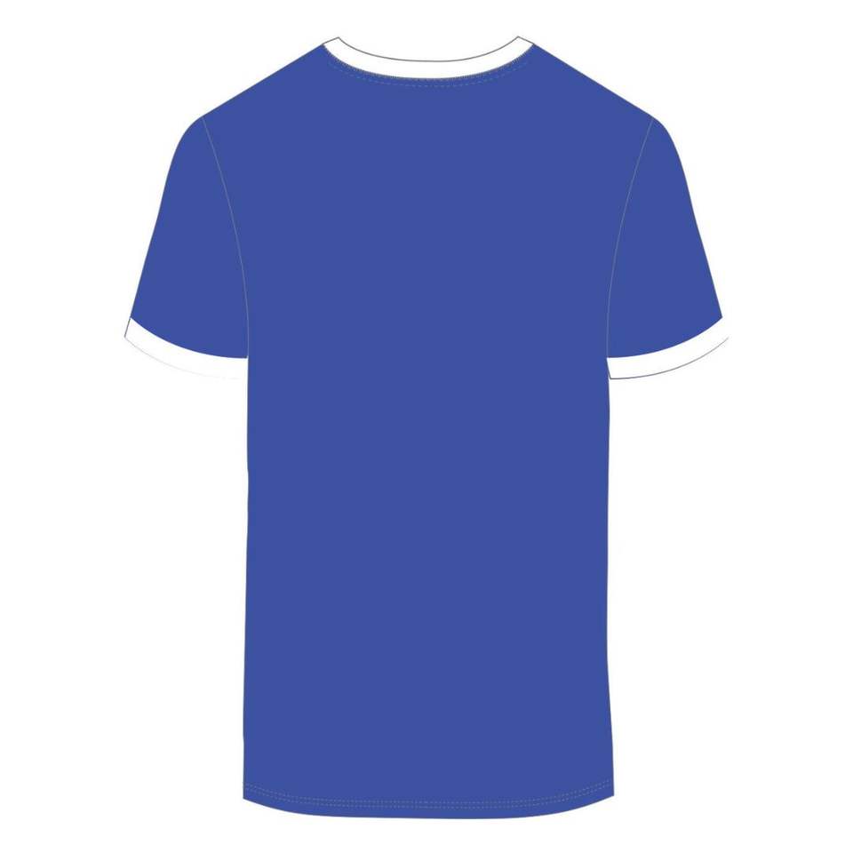 HBCU hommes instruits Chenille contraste garniture sonnerie t-shirt bleu avec des lettres brodées blanches doux coton collégial vêtements