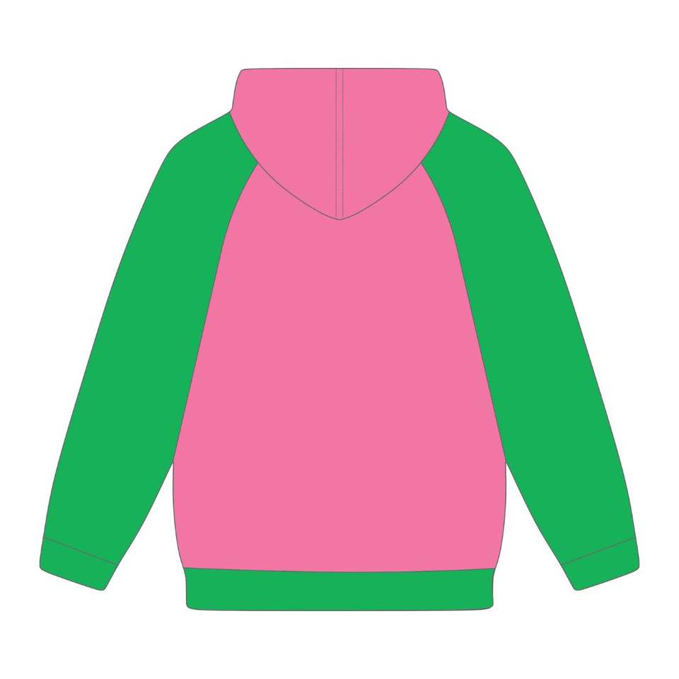 Sweat à capuche à manches raglan rose, broderie en chenille, sororité grecque Divine Nine, mode universitaire, sweat à capuche HBCU