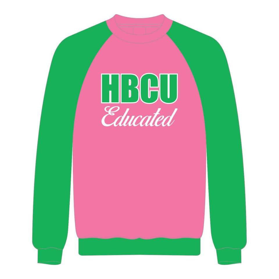 Sweat-shirt à manches raglan rose, broderie en chenille, pour les universités d'enseignement supérieur afro-américaines (HBCU), motif Sororité Grecque Divine Neuf, style universitaire