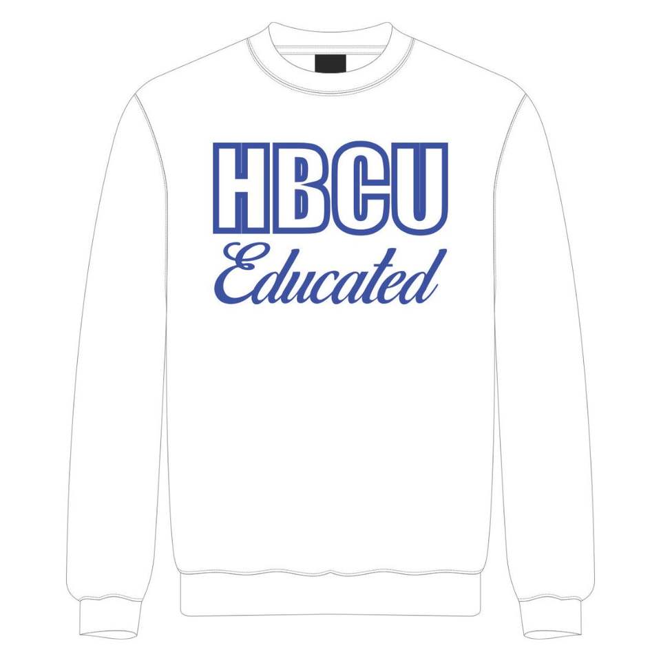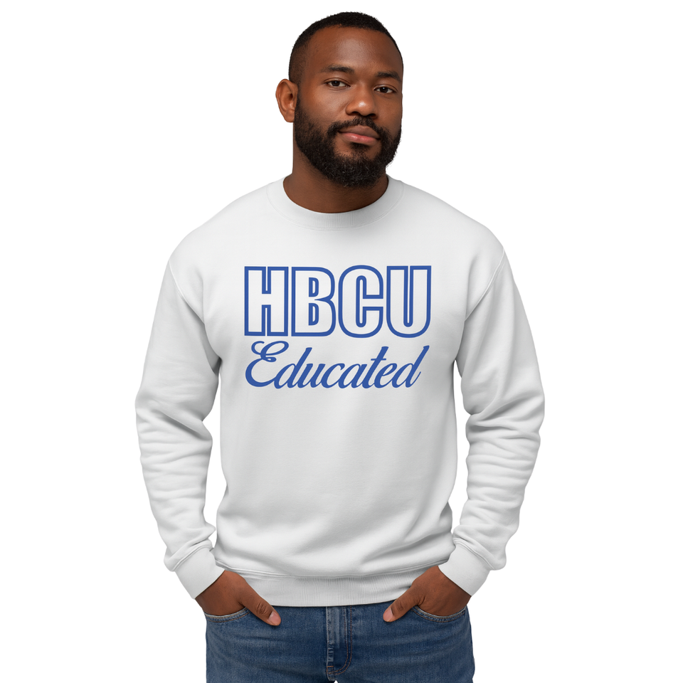 HBCU Sigma Educated Chenille Sweatshirt White & Royal Blue Embroidery Custom Cotton Blend Greek Fraternity Divine Nine Apparel