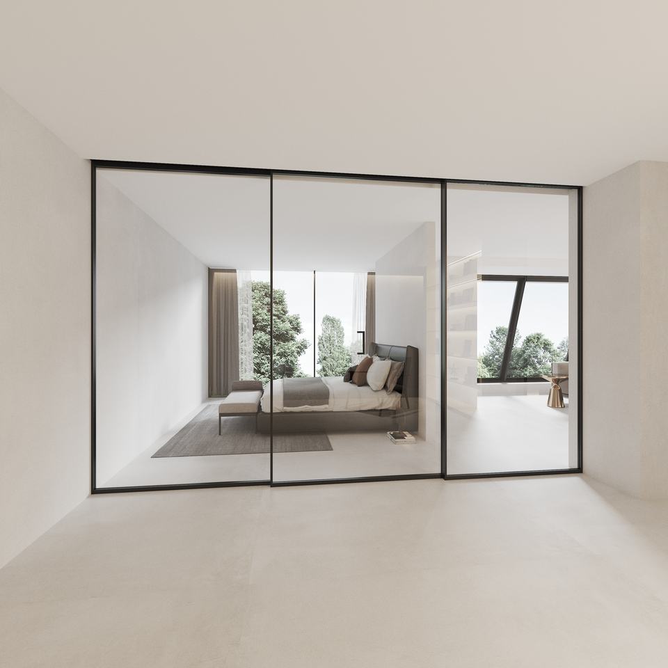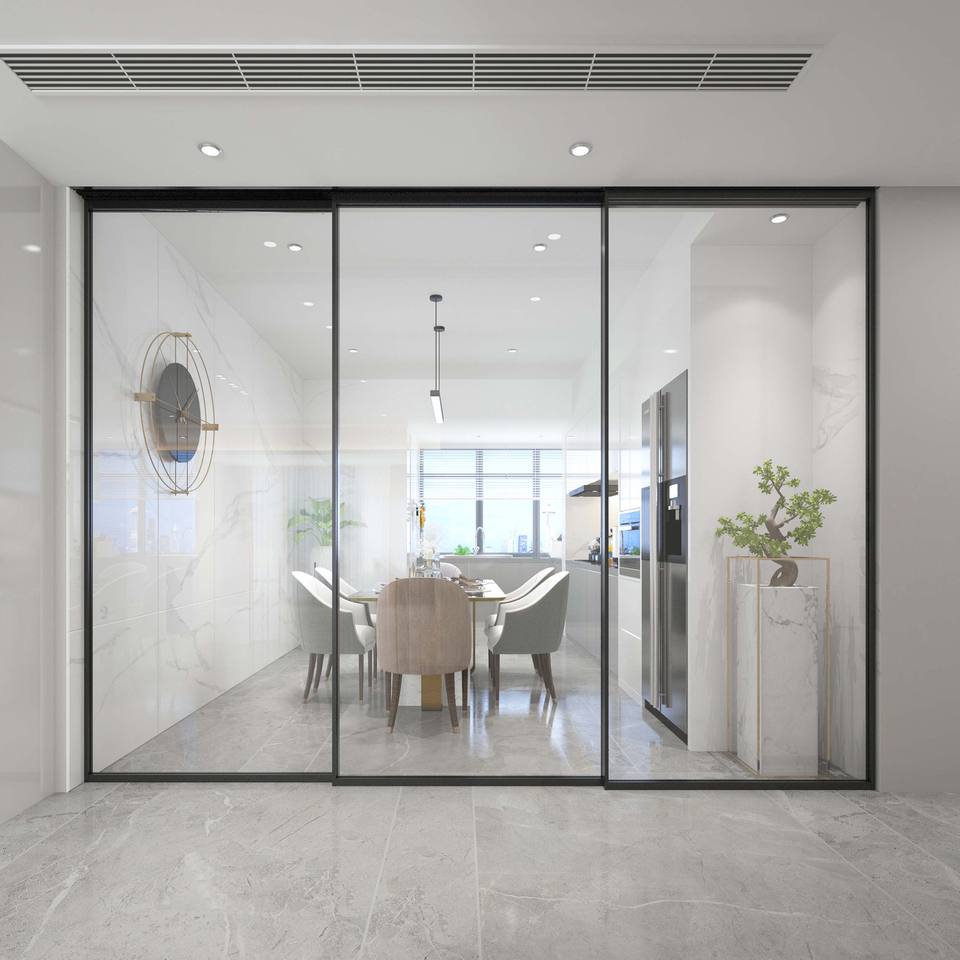 Curseurs en verre à triple liaison de conception moderne HBD pour une utilisation optimale de l'espace Porte intérieure à action synchronisée pour hôtels