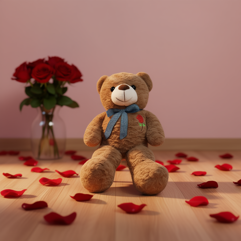 Ours en peluche brodé de roses Ruobing 55 cm, jouet en peluche doux avec ruban, emballage cadeau pour la Saint-Valentin