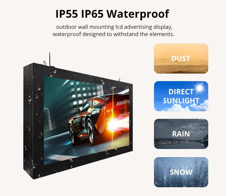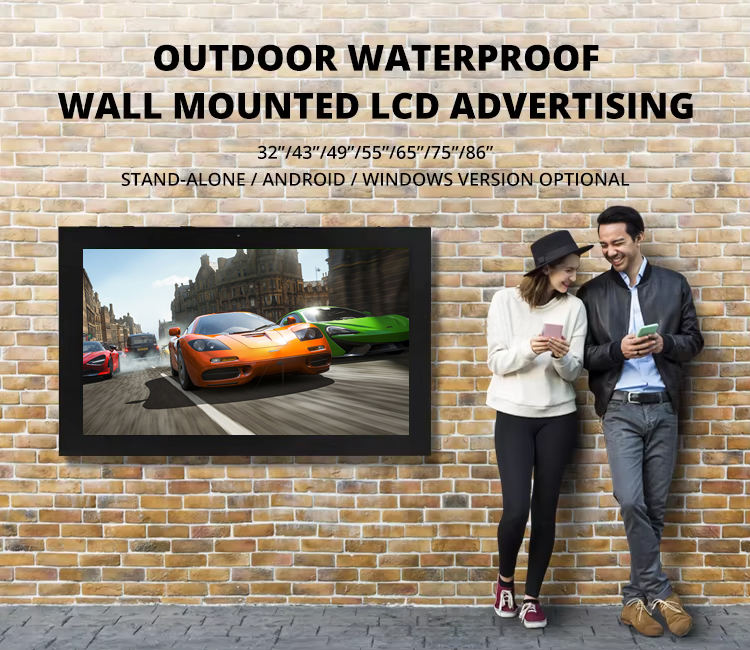Écran mural extérieur HBYLCD facile à installer, résistant aux intempéries, 2500 nits de luminosité élevée, pour menu de restaurant