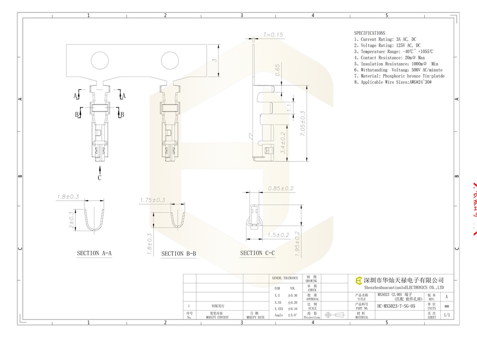 Bornes à sertir en laiton HC-MX5023-T, connecteur de fil à pas de 2,0 mm pour connexion fil-circuit imprimé