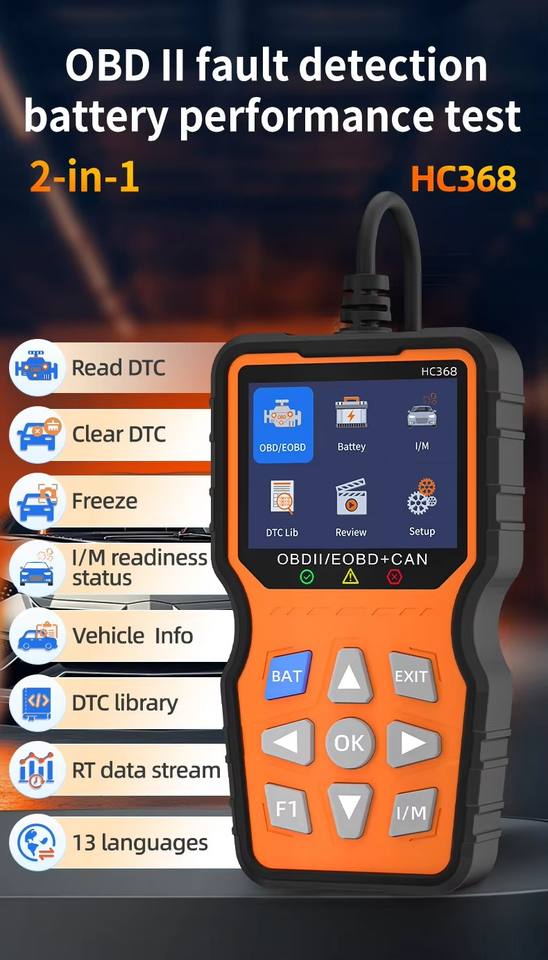 Instrument de diagnostic automobile HC368, outil de test OBD2, décodeur de détection de flux de données de batterie et de moteur