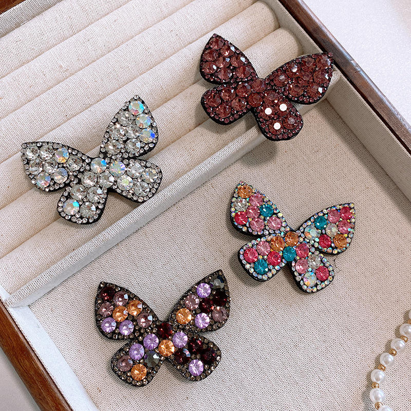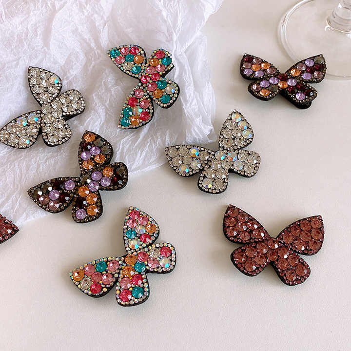 HC631D New Korean Style Popular Luxury Colorful Shiny Diamond Rhinestone Butterfly Plastic Hair Clips for Women