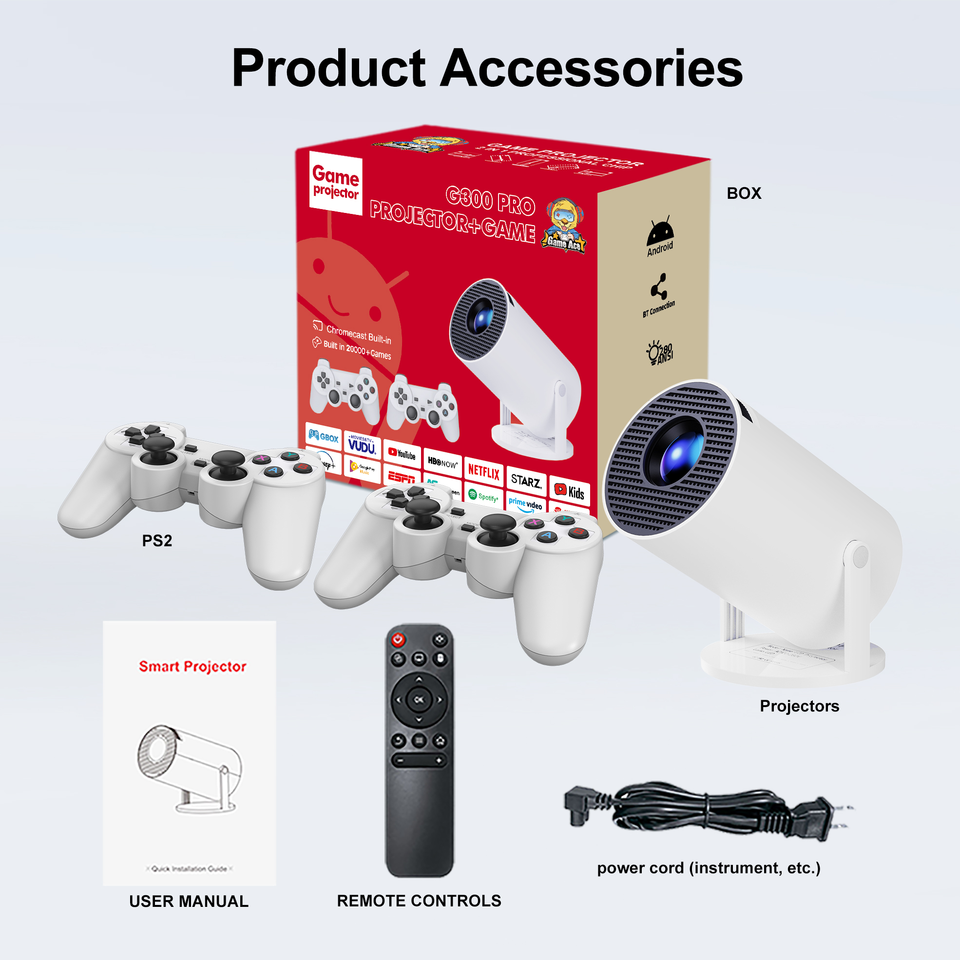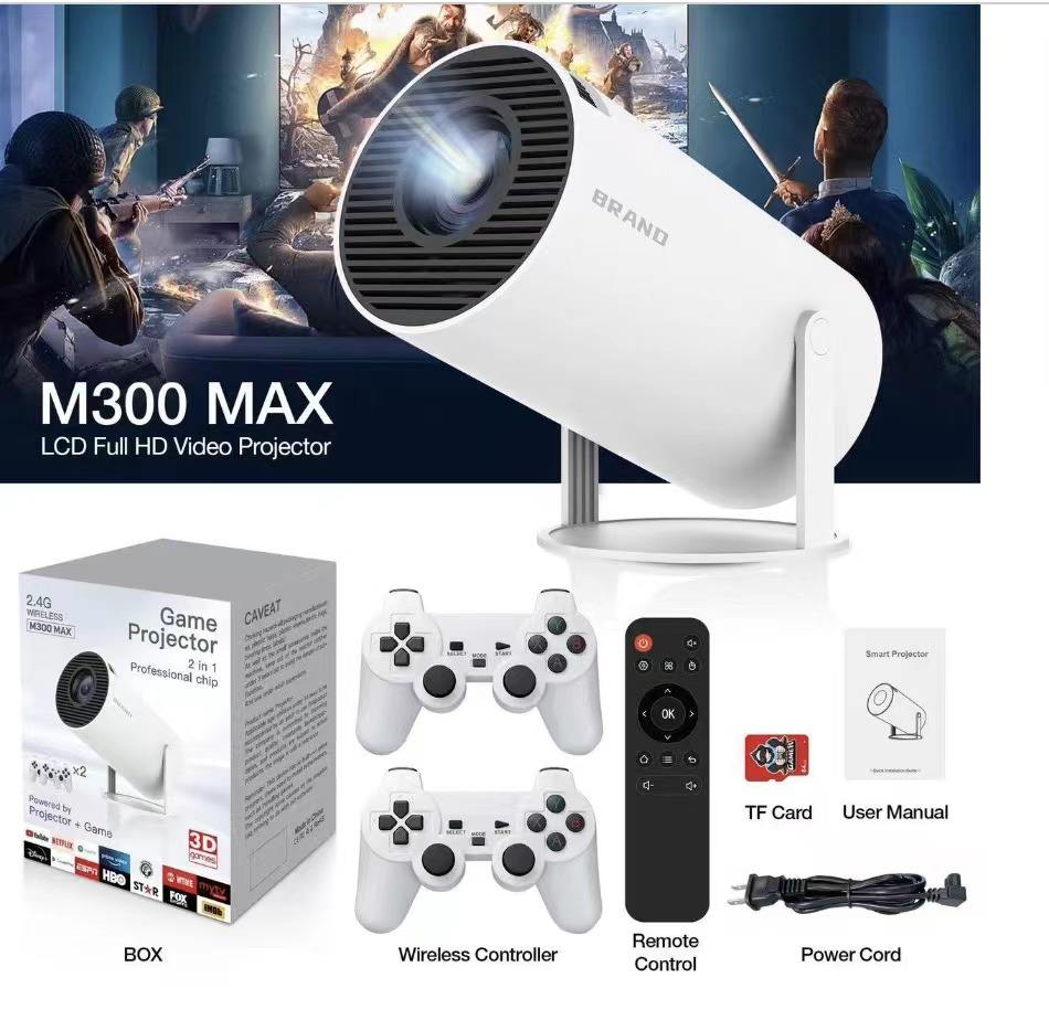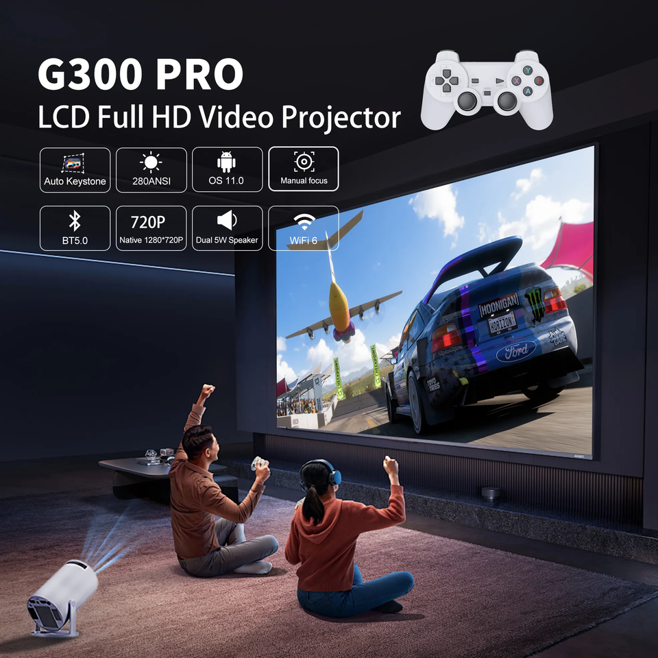 HD 4K Mini Home Theater LCD Projector JC300 PRO with 280 Lumens Android 11 HIFI Stereo 8GB Storage Portable Retro Game Console