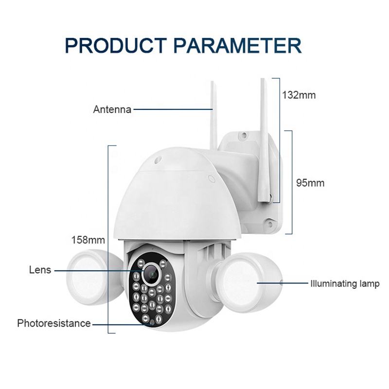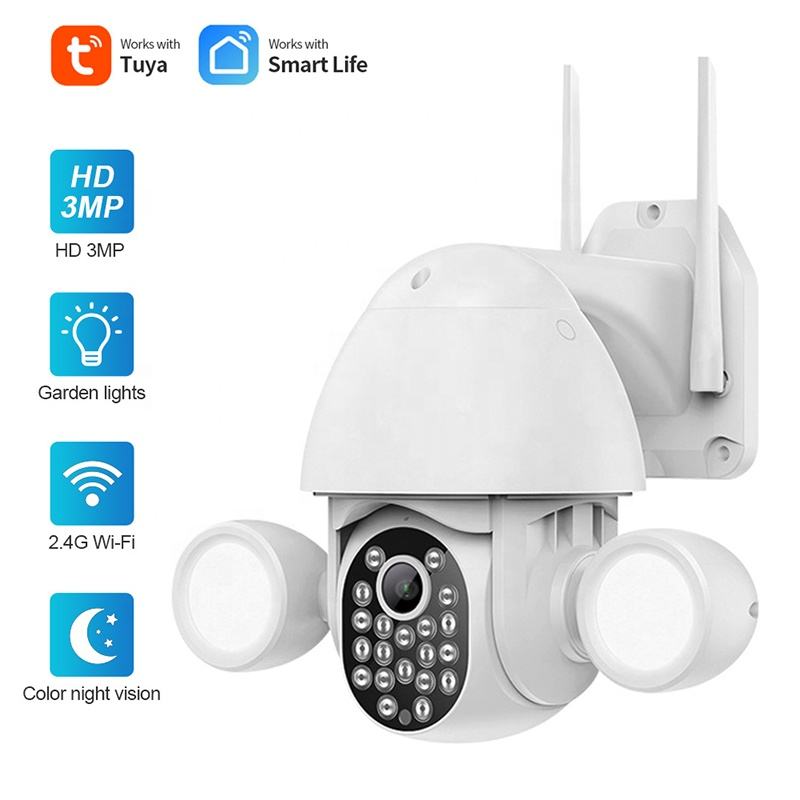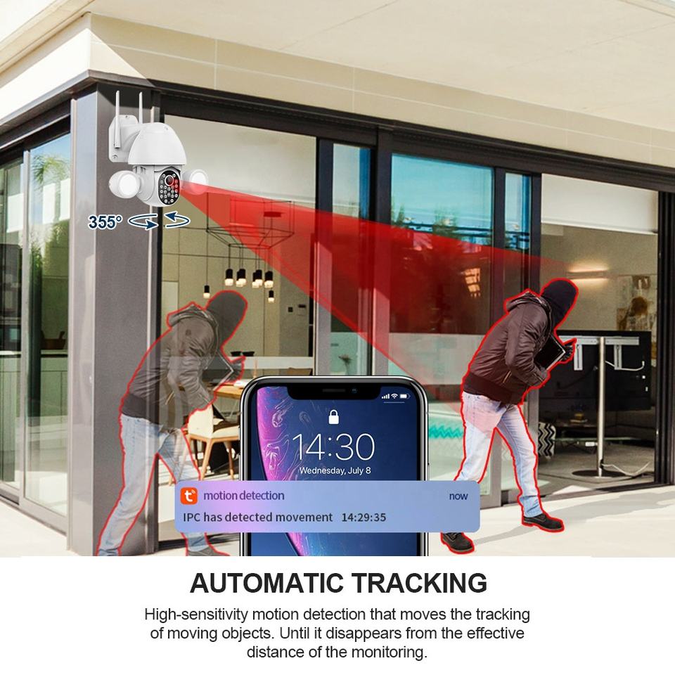 Caméra HD avec source lumineuse, vision nocturne infrarouge couleur, WiFi, détection intelligente des personnes Tuya, caméra PTZ extérieure