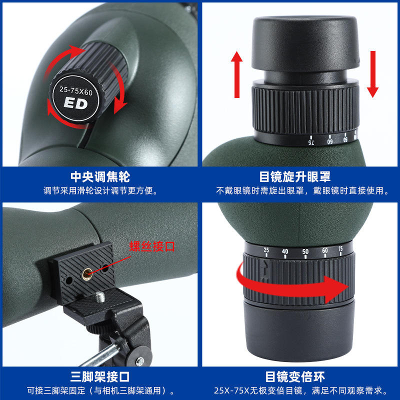 Lentille optique HD FMC 25-75X60mm longue-vue avec trépied pour la chasse et l'observation des oiseaux Catégorie Télescope et jumelles