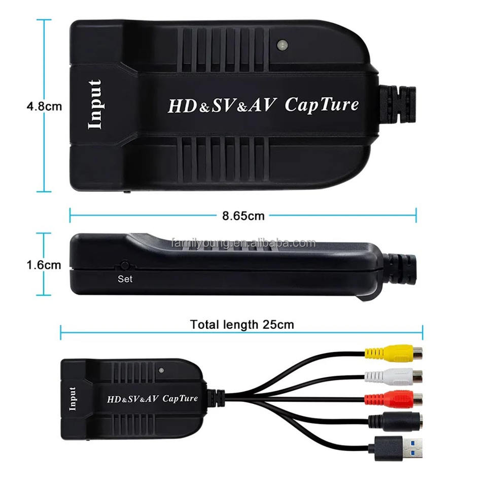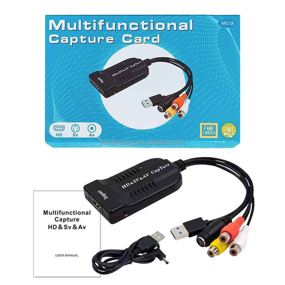 Carte de capture vidéo AV S-Video vers USB, convertisseur analogique-numérique, enregistreur pour jeux, streaming, magnétoscope, caméscope, DVD