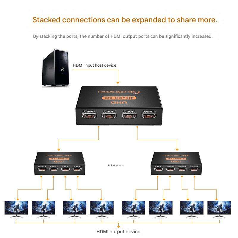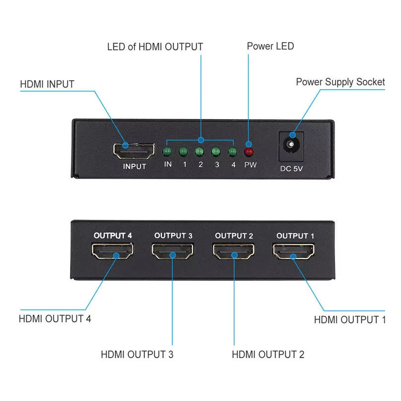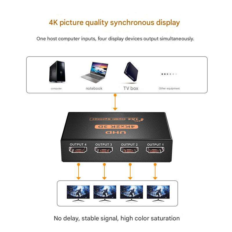 Adaptateur séparateur HD-MI 1x4 Convertisseur HDTV 1 entrée 4 sorties Hub vidéo audio 4K HD pour Xbox PS4 DVD TV Moniteur Affichage Ordinateur portable