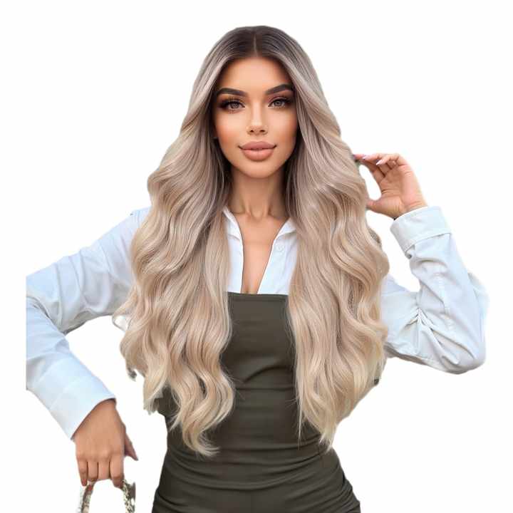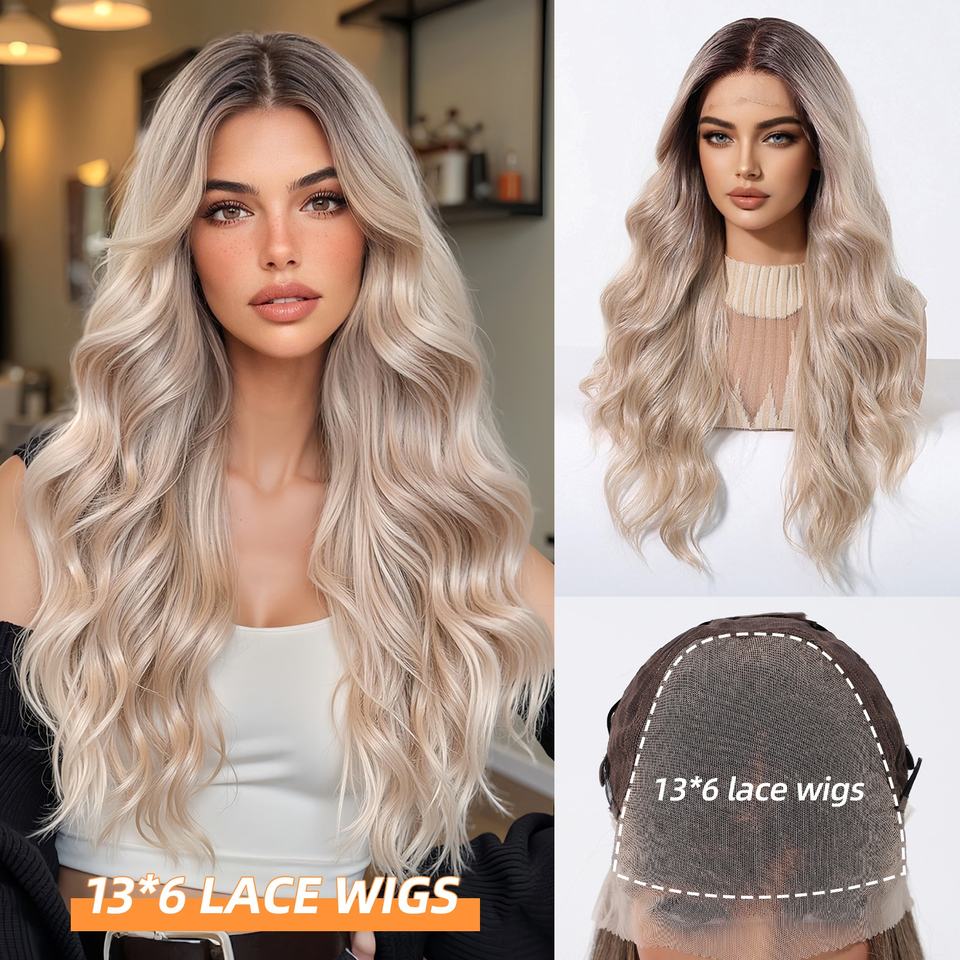 Perruque HD transparente soie Lace Front 13*6 sans colle cheveux synthétiques pré-plumés résistant à la chaleur petite taille de bonnet blanc blond dégradé