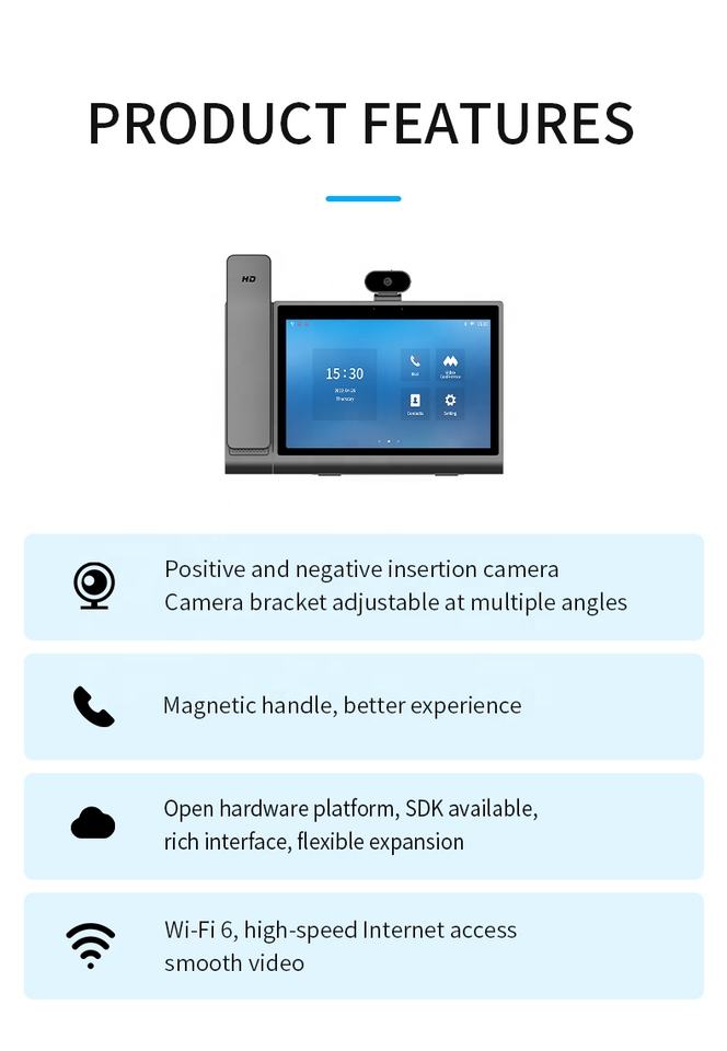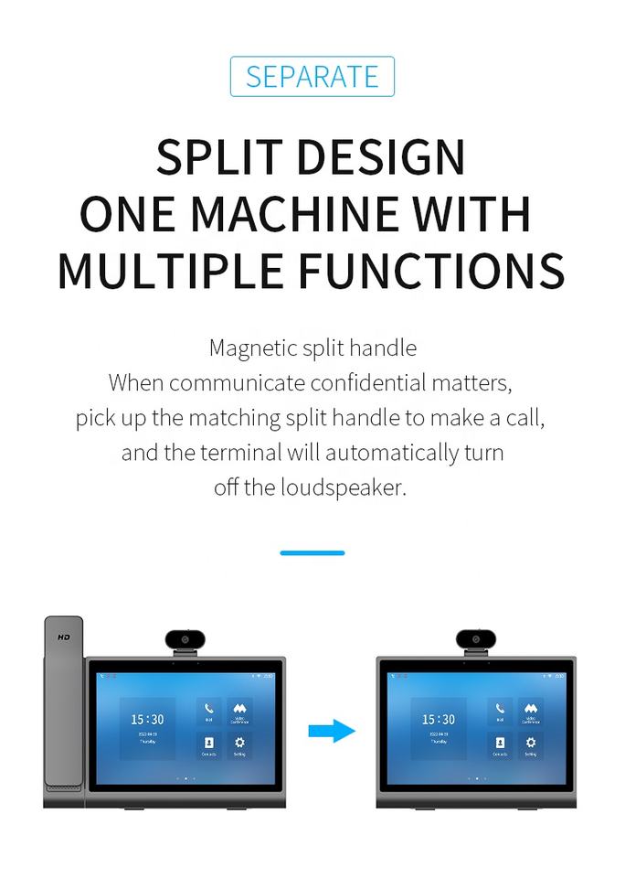 Appel vidéo haute fidélité HD 10-1 pouces Android 12 Téléphone Voip Vidéo Réunion Téléphone IP WiFi Ports POE Conférence Téléphone SIP