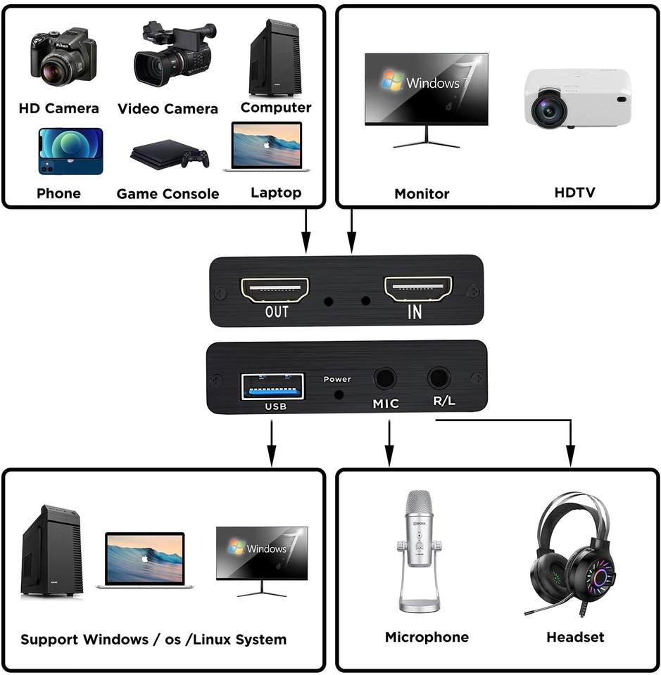 Boîtier d'enregistrement et vidéo HD, HDMI 2.0/1080P, 4K, USB 2.0, carte d'acquisition Audio/vidéo en boucle, convertisseur pour ordinateur