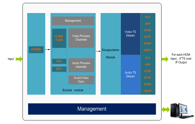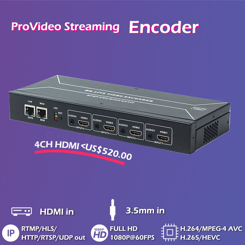 Encodeur vidéo HD vers IP H264 H265 HLS HTTP UDP Encodeur IPTV HD 4 canaux