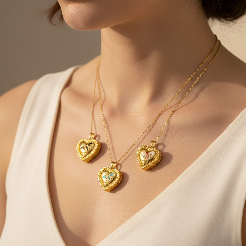 Breloque photo HD4433 ouvrable en forme de cœur, thème abeille, en laiton plaqué or 18 carats avec émail goutte d'huile, collection Amour, bijoux pour femme