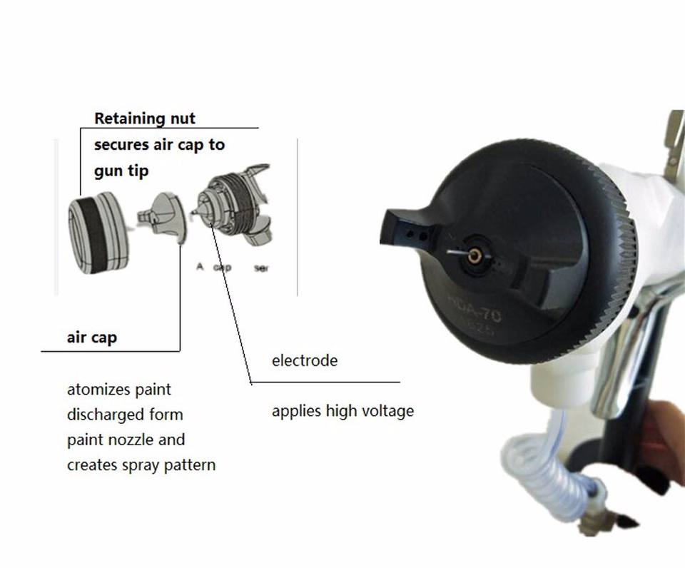 Pistolet à peinture électrostatique manuel HDA bonne efficacité de pulvérisation pour la peinture de revêtement haute densité de substrat en acier
