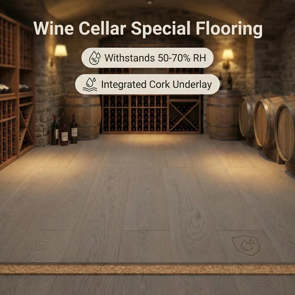 Planches de parquet en bois d'ingénierie HDF résistantes à l'humidité avec résistance à l'usure AC4 et sous-couche en liège pour utilisation au sol et au mur