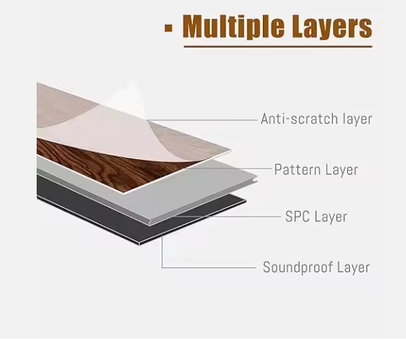 Plancher SPC HDF à trois couches en eucalyptus/pin/bois de bouleau, imperméable, écologique, résistant à l'usure, design moderne pour bureau et cuisine