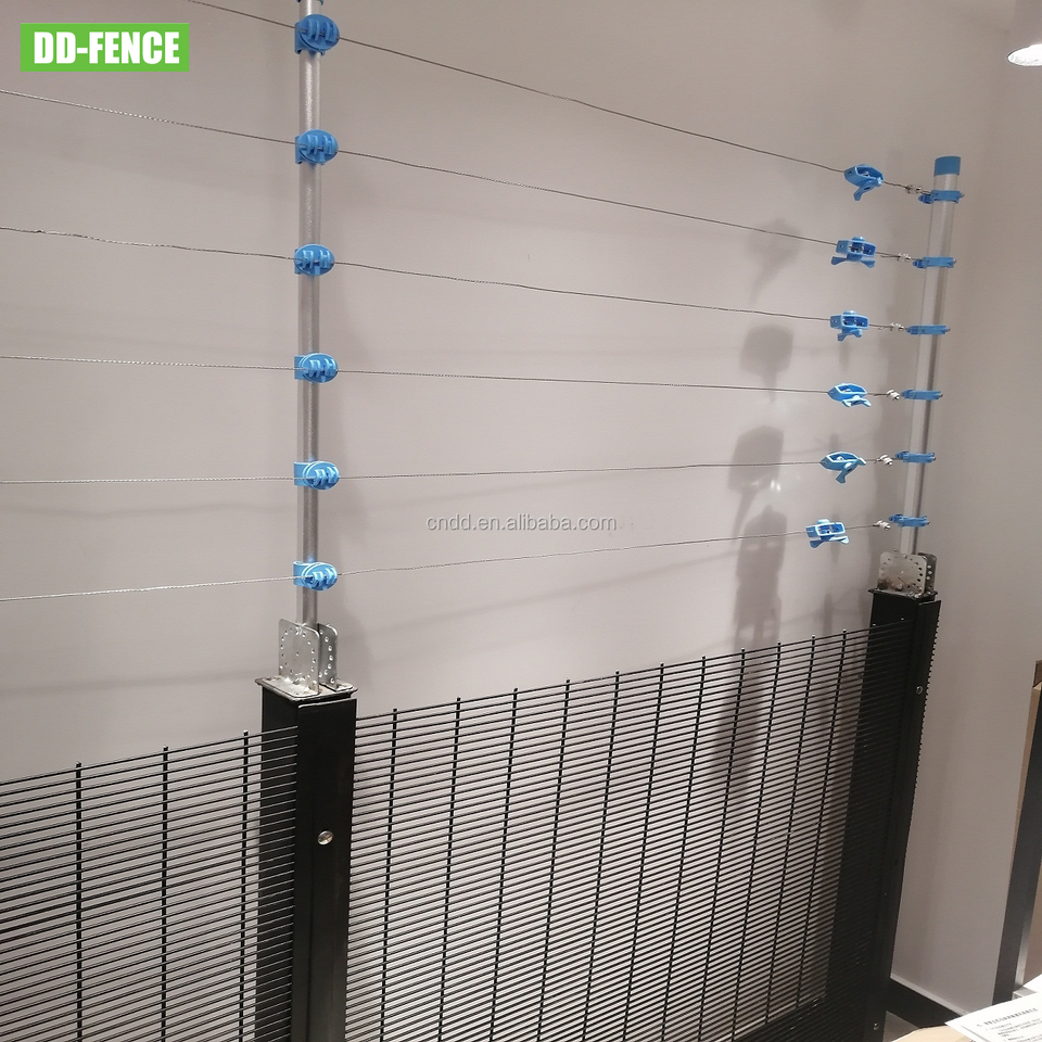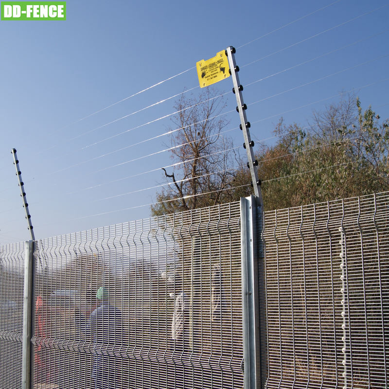 Clôture anti-escalade en treillis soudé HDG 358 avec clôture électrique pour prison, aéroport, frontière, usine, usine, chemin de fer, télécommunications, poste de transformation électrique